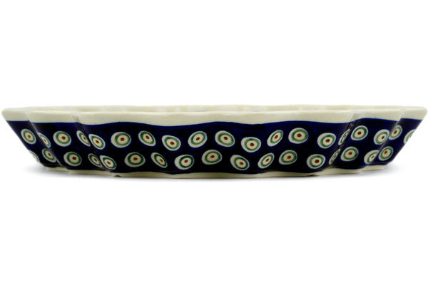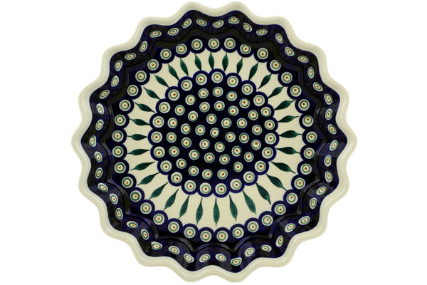This Peacock Leaves 13" Fluted Pie Dish was handmade and hand decorated in Boleslawiec, Poland by skilled artisans according to old traditional methods. This Polish stoneware is microwave, dishwasher, freezer, and oven safe up to 480°F. It does not contain lead or cadmium. It is part of the Peacock Leaves Collection.