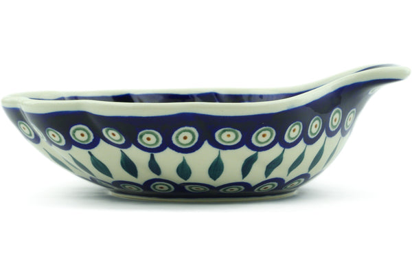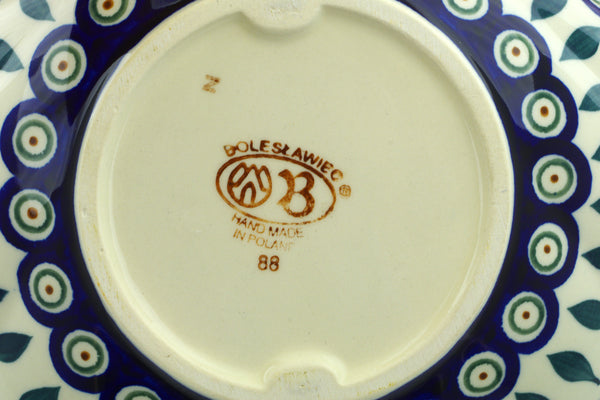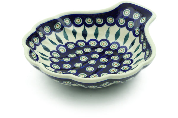This Peacock Leaves 9" Scalloped Bowl was handmade and hand decorated in Boleslawiec, Poland by skilled artisans according to old traditional methods. This Polish stoneware is microwave, dishwasher, freezer, and oven safe up to 480°F. It does not contain lead or cadmium. It is part of the Peacock Leaves Collection.