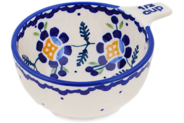 1/2 Cup Measuring Cup 4 oz Orange And Blue Flower Theme