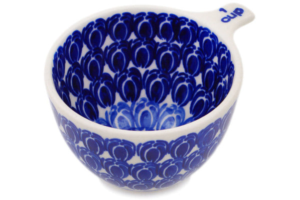 1 Cup Measuring Cup 8 oz Retro Blue Tulips Theme