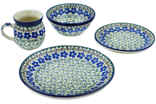 This Blue Dogwood 4-Piece Place Setting was handmade and hand decorated in Boleslawiec, Poland by skilled artisans according to old traditional methods. This Polish stoneware is microwave, dishwasher, freezer, and oven safe up to 480°F. It does not contain lead or cadmium. It is part of the Blue Dogwood Collection.