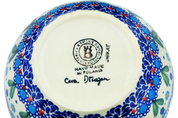 This Blue Tulip Garden 4-Piece Place Setting was handmade and hand decorated in Boleslawiec, Poland by skilled artisans according to old traditional methods. This is a Polish pottery Signature Unikat, which means that it has been hand painted with both sponges and brushes and it is signed by the artist who painted it. Unikat pieces are the most intricate works of art. Larger Unikat items take hours of very careful work to finish. This Polish stoneware is microwave, dishwasher, freezer, and oven safe up to 480°F. It does not contain lead or cadmium. It is part of the Blue Tulip Garden Collection.