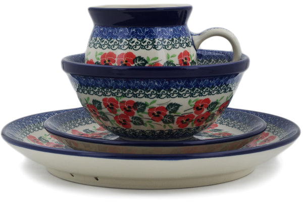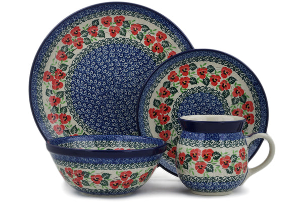 This Delicate Red Flowers 4-Piece Place Setting was handmade and hand decorated in Boleslawiec, Poland by skilled artisans according to old traditional methods. This Polish stoneware is microwave, dishwasher, freezer, and oven safe up to 480°F. It does not contain lead or cadmium. It is part of the Delicate Red Flowers Collection.