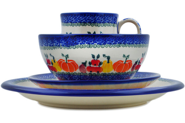 This Fresh Vegetable Garden 4-Piece Place Setting was handmade and hand decorated in Boleslawiec, Poland by skilled artisans according to old traditional methods. This Polish stoneware is microwave, dishwasher, freezer, and oven safe up to 480°F. It does not contain lead or cadmium. It is part of the Fresh Vegetable Garden Collection.