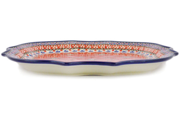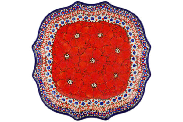 This Crimson Poppies 10" 8 Point Plate was handmade and hand decorated in Boleslawiec, Poland by skilled artisans according to old traditional methods. This is a Polish pottery Signature Unikat, which means that it has been hand painted with both sponges and brushes and it is signed by the artist who painted it. Unikat pieces are the most intricate works of art. Larger Unikat items take hours of very careful work to finish. This Polish stoneware is microwave, dishwasher, freezer, and oven safe up to 480°F. It does not contain lead or cadmium. It is part of the Crimson Poppies Collection.