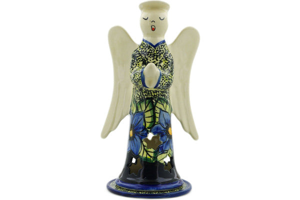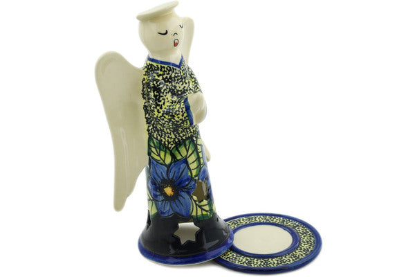This Midnight Glow 9" Angel Candle Holder was handmade and hand decorated in Boleslawiec, Poland by skilled artisans according to old traditional methods. This is a Polish pottery Signature Unikat, which means that it has been hand painted with both sponges and brushes and it is signed by the artist who painted it. Unikat pieces are the most intricate works of art. Larger Unikat items take hours of very careful work to finish. This Polish stoneware is microwave, dishwasher, freezer, and oven safe up to 480°F. It does not contain lead or cadmium. It is part of the Midnight Glow Collection.