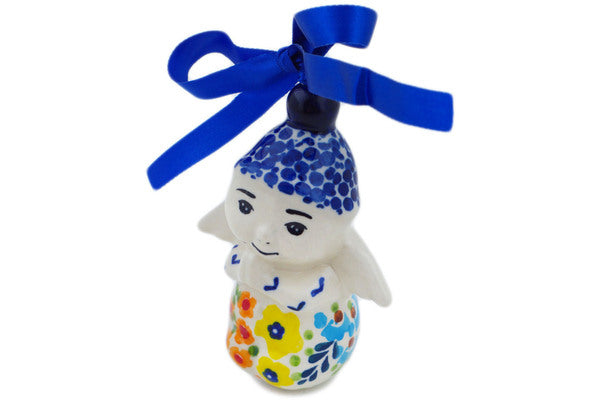 This Vibrant Hanging Garden 4" Angel Ornament was handmade and hand decorated in Boleslawiec, Poland by skilled artisans according to old traditional methods. This is a Polish pottery Signature Unikat, which means that it has been hand painted with both sponges and brushes and it is signed by the artist who painted it. Unikat pieces are the most intricate works of art. Larger Unikat items take hours of very careful work to finish. This Polish stoneware is microwave, dishwasher, freezer, and oven safe up to 480°F. It does not contain lead or cadmium. It is part of the Vibrant Hanging Garden Collection.