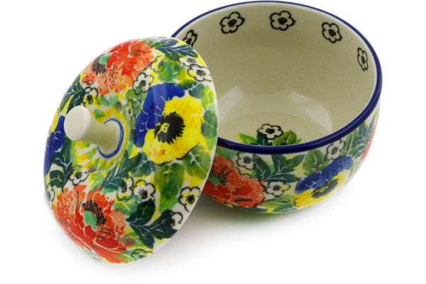 This Breathtaking 4" Apple Shaped Jar was handmade and hand decorated in Boleslawiec, Poland by skilled artisans according to old traditional methods. This is a Polish pottery Signature Unikat, which means that it has been hand painted with both sponges and brushes and it is signed by the artist who painted it. Unikat pieces are the most intricate works of art. Larger Unikat items take hours of very careful work to finish. This Polish stoneware is microwave, dishwasher, freezer, and oven safe up to 480°F. It does not contain lead or cadmium. It is part of the Breathtaking Collection.