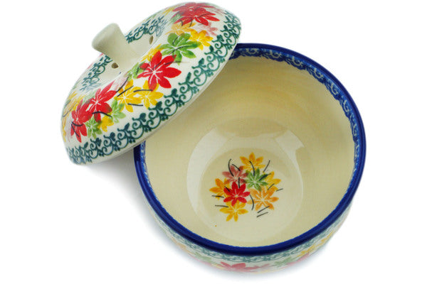 This Fall Vibes 4" Apple Shaped Jar was handmade and hand decorated in Boleslawiec, Poland by skilled artisans according to old traditional methods. This Polish stoneware is microwave, dishwasher, freezer, and oven safe up to 480°F. It does not contain lead or cadmium. It is part of the Fall Vibes Collection.