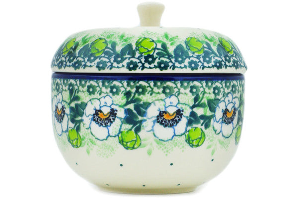 This Green Flora 4" Apple Shaped Jar was handmade and hand decorated in Boleslawiec, Poland by skilled artisans according to old traditional methods. This Polish stoneware is microwave, dishwasher, freezer, and oven safe up to 480°F. It does not contain lead or cadmium. It is part of the Green Flora Collection.