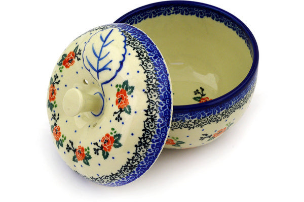 This Pasadena Delight 5" Apple Shaped Jar was handmade and hand decorated in Boleslawiec, Poland by skilled artisans according to old traditional methods. This Polish stoneware is microwave, dishwasher, freezer, and oven safe up to 480°F. It does not contain lead or cadmium. It is part of the Pasadena Delight Collection.