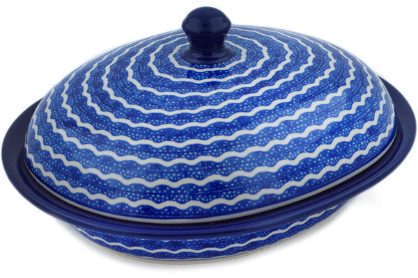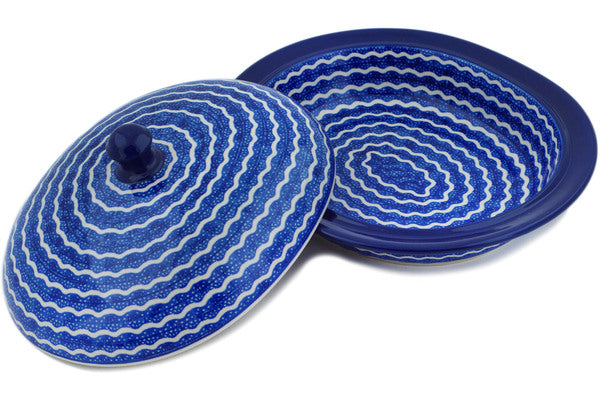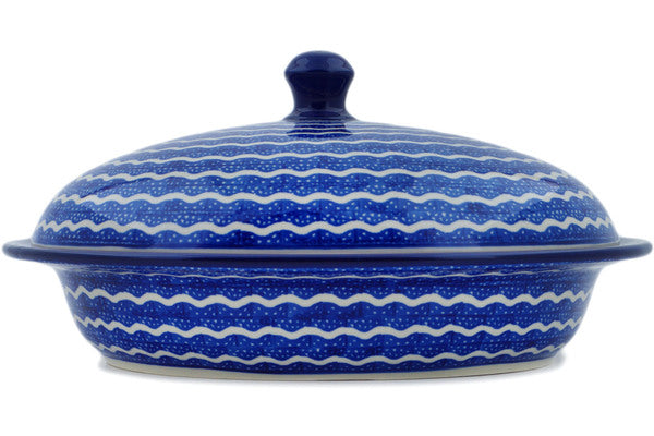This Totally Wavy 12" Baker with Cover was handmade and hand decorated in Boleslawiec, Poland by skilled artisans according to old traditional methods. This Polish stoneware is microwave, dishwasher, freezer, and oven safe up to 480°F. It does not contain lead or cadmium. It is part of the Totally Wavy Collection.
