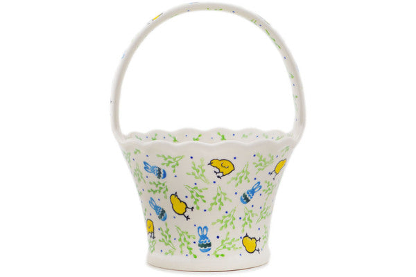 This Easter Day 8" Basket with Handle was handmade and hand decorated in Boleslawiec, Poland by skilled artisans according to old traditional methods. This Polish stoneware is microwave, dishwasher, freezer, and oven safe up to 480°F. It does not contain lead or cadmium. It is part of the Easter Day Collection.