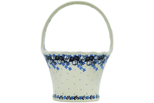 This Flowers At Dusk 8" Basket with Handle was handmade and hand decorated in Boleslawiec, Poland by skilled artisans according to old traditional methods. This Polish stoneware is microwave, dishwasher, freezer, and oven safe up to 480°F. It does not contain lead or cadmium. It is part of the Flowers At Dusk Collection.
