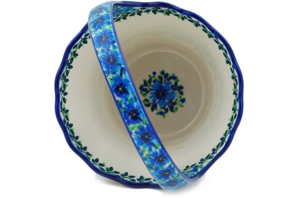 This Pansies And Daisies 8" Basket with Handle was handmade and hand decorated in Boleslawiec, Poland by skilled artisans according to old traditional methods. This is a Polish pottery Signature Unikat, which means that it has been hand painted with both sponges and brushes and it is signed by the artist who painted it. Unikat pieces are the most intricate works of art. Larger Unikat items take hours of very careful work to finish. This Polish stoneware is microwave, dishwasher, freezer, and oven safe up to 480°F. It does not contain lead or cadmium. It is part of the Pansies And Daisies Collection.