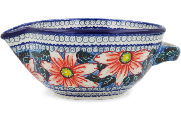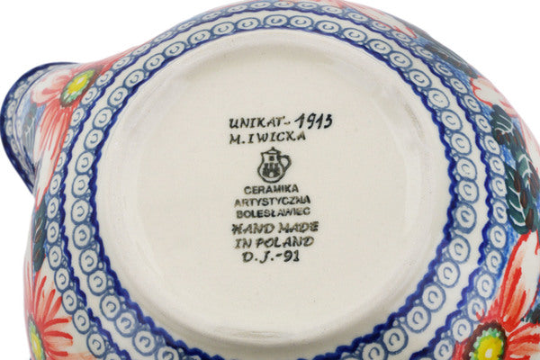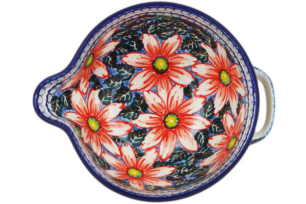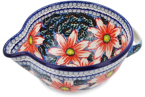 This Bold Susan 7½-inch Batter Bowl was handmade and hand decorated in Boleslawiec, Poland by skilled artisans according to old traditional methods. This is a Polish pottery Signature Unikat, which means that it has been hand painted with both sponges and brushes and it is signed by the artist who painted it. Unikat pieces are the most intricate works of art. Larger Unikat items take hours of very careful work to finish. This Polish stoneware is microwave, dishwasher, freezer, and oven safe up to 480°F. It does not contain lead or cadmium. It is part of the Bold Susan Collection.