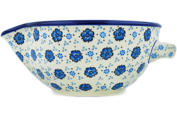 This Flowing Blues 7½-inch Batter Bowl was handmade and hand decorated in Boleslawiec, Poland by skilled artisans according to old traditional methods. This Polish stoneware is microwave, dishwasher, freezer, and oven safe up to 480°F. It does not contain lead or cadmium. It is part of the Flowing Blues Collection.