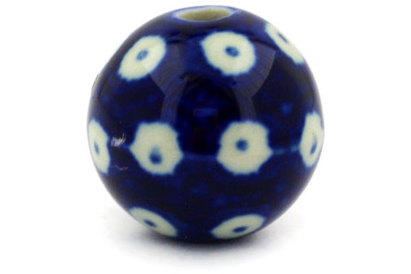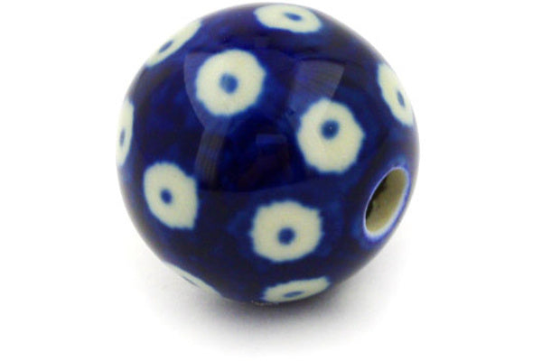 This Blue Eyes 1" Bead was handmade and hand decorated in Boleslawiec, Poland by skilled artisans according to old traditional methods. This Polish stoneware is microwave, dishwasher, freezer, and oven safe up to 480°F. It does not contain lead or cadmium. It is part of the Blue Eyes Collection.