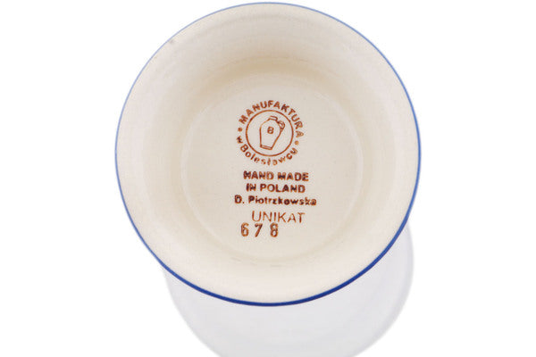 This Misty Blue 19 oz Beer Glass was handmade and hand decorated in Boleslawiec, Poland by skilled artisans according to old traditional methods. This is a Polish pottery Signature Unikat, which means that it has been hand painted with both sponges and brushes and it is signed by the artist who painted it. Unikat pieces are the most intricate works of art. Larger Unikat items take hours of very careful work to finish. This Polish stoneware is microwave, dishwasher, freezer, and oven safe up to 480°F. It does not contain lead or cadmium. It is part of the Misty Blue Collection.
