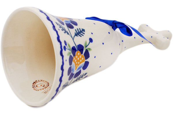 This Orange And Blue Flower 8" Bell Ornament was handmade and hand decorated in Boleslawiec, Poland by skilled artisans according to old traditional methods. This Polish stoneware is microwave, dishwasher, freezer, and oven safe up to 480°F. It does not contain lead or cadmium. It is part of the Orange And Blue Flower Collection.