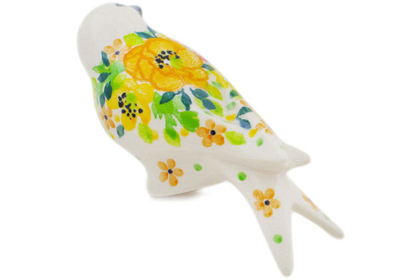 This Bright Spring 4" Bird Figurine was handmade and hand decorated in Boleslawiec, Poland by skilled artisans according to old traditional methods. This is a Polish pottery Signature Unikat, which means that it has been hand painted with both sponges and brushes and it is signed by the artist who painted it. Unikat pieces are the most intricate works of art. Larger Unikat items take hours of very careful work to finish. This Polish stoneware is microwave, dishwasher, freezer, and oven safe up to 480°F. It does not contain lead or cadmium. It is part of the Bright Spring Collection.