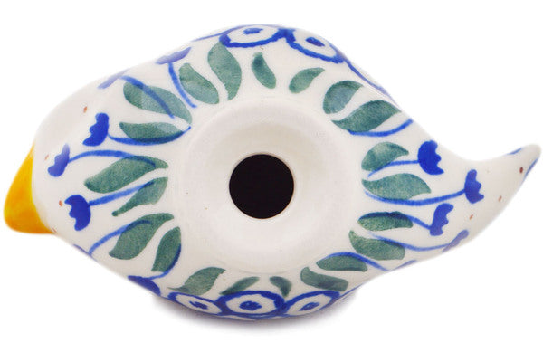 This Water Tulip 4" Bird Figurine was handmade and hand decorated in Boleslawiec, Poland by skilled artisans according to old traditional methods. This Polish stoneware is microwave, dishwasher, freezer, and oven safe up to 480°F. It does not contain lead or cadmium. It is part of the Water Tulip Collection.
