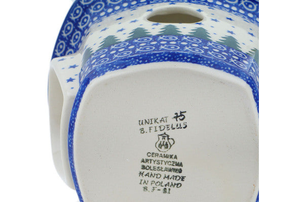 This Piney Forest 9" Birdhouse was handmade and hand decorated in Boleslawiec, Poland by skilled artisans according to old traditional methods. This is a Polish pottery Signature Unikat, which means that it has been hand painted with both sponges and brushes and it is signed by the artist who painted it. Unikat pieces are the most intricate works of art. Larger Unikat items take hours of very careful work to finish. This Polish stoneware is microwave, dishwasher, freezer, and oven safe up to 480°F. It does not contain lead or cadmium. It is part of the Piney Forest Collection.