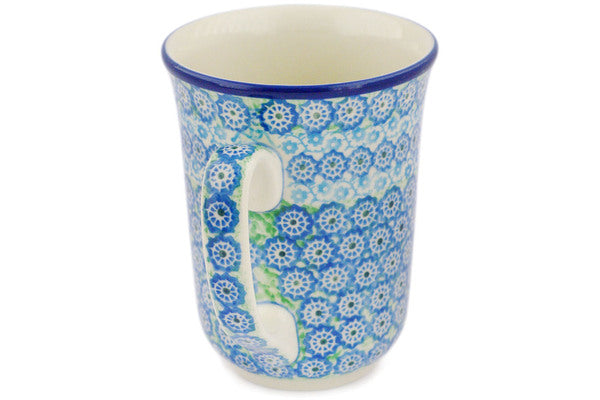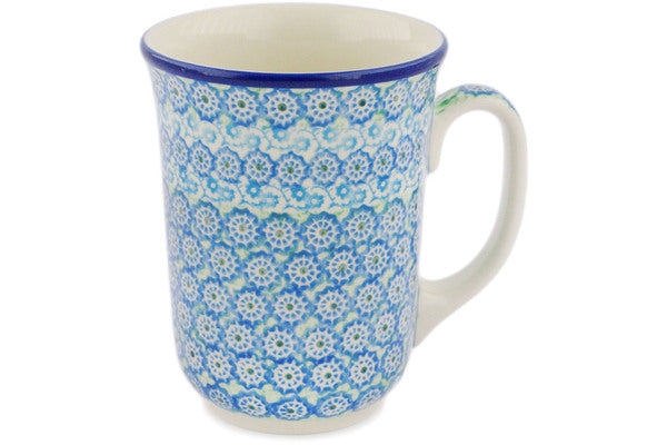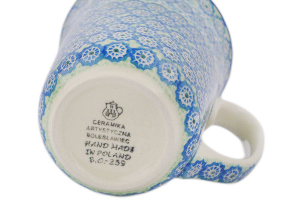 This Blue Floral Wheel 17 oz Bistro Mug was handmade and hand decorated in Boleslawiec, Poland by skilled artisans according to old traditional methods. This Polish stoneware is microwave, dishwasher, freezer, and oven safe up to 480°F. It does not contain lead or cadmium. It is part of the Blue Floral Wheel Collection.
