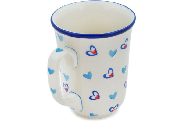 This Dancing Hearts 17 oz Bistro Mug was handmade and hand decorated in Boleslawiec, Poland by skilled artisans according to old traditional methods. This Polish stoneware is microwave, dishwasher, freezer, and oven safe up to 480°F. It does not contain lead or cadmium. It is part of the Dancing Hearts Collection.