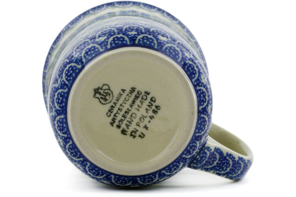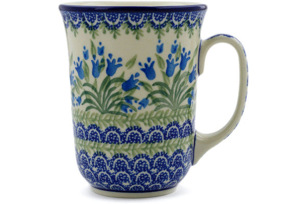 This Feathery Bluebells 17 oz Bistro Mug was handmade and hand decorated in Boleslawiec, Poland by skilled artisans according to old traditional methods. This Polish stoneware is microwave, dishwasher, freezer, and oven safe up to 480°F. It does not contain lead or cadmium. It is part of the Feathery Bluebells Collection.