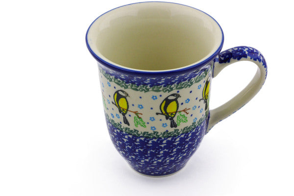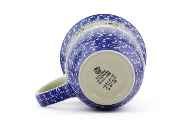 This Happy Goldfinch 17 oz Bistro Mug was handmade and hand decorated in Boleslawiec, Poland by skilled artisans according to old traditional methods. This Polish stoneware is microwave, dishwasher, freezer, and oven safe up to 480°F. It does not contain lead or cadmium. It is part of the Happy Goldfinch Collection.