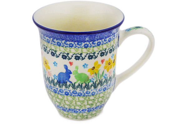 This Hopping In Love 17 oz Bistro Mug was handmade and hand decorated in Boleslawiec, Poland by skilled artisans according to old traditional methods. This Polish stoneware is microwave, dishwasher, freezer, and oven safe up to 480°F. It does not contain lead or cadmium. It is part of the Hopping In Love Collection.