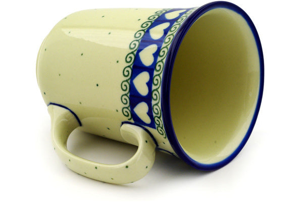 This Light Hearted 17 oz Bistro Mug was handmade and hand decorated in Boleslawiec, Poland by skilled artisans according to old traditional methods. This Polish stoneware is microwave, dishwasher, freezer, and oven safe up to 480°F. It does not contain lead or cadmium. It is part of the Light Hearted Collection.