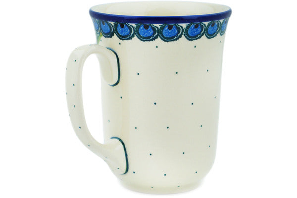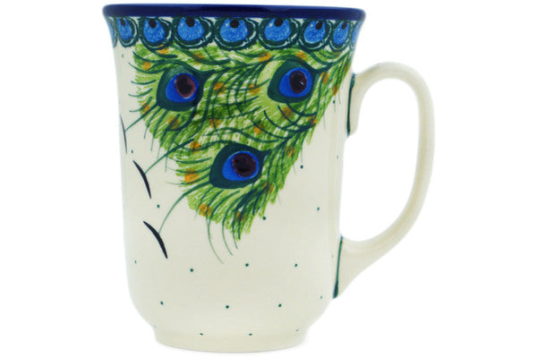 This Majestic Peacock 17 oz Bistro Mug was handmade and hand decorated in Boleslawiec, Poland by skilled artisans according to old traditional methods. This Polish stoneware is microwave, dishwasher, freezer, and oven safe up to 480°F. It does not contain lead or cadmium. It is part of the Majestic Peacock Collection.