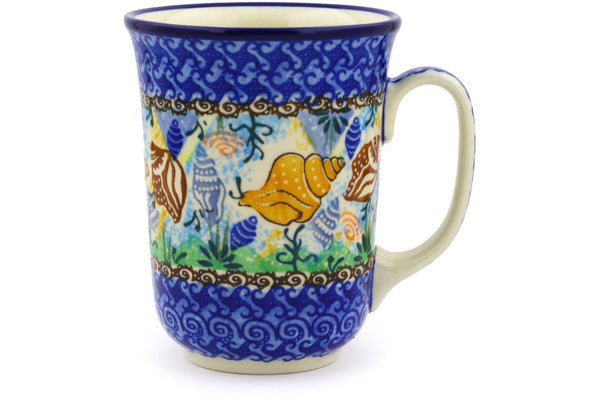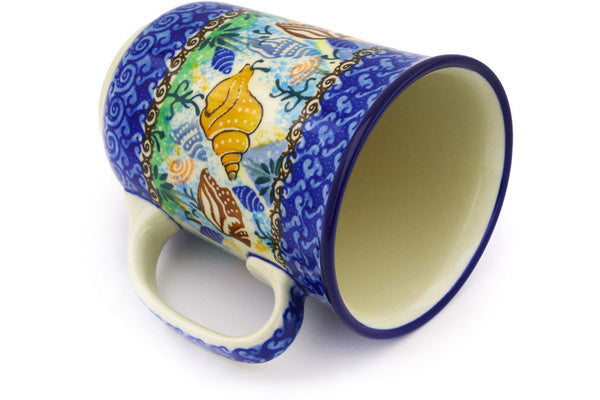 This Ocean Whisper 17 oz Bistro Mug was handmade and hand decorated in Boleslawiec, Poland by skilled artisans according to old traditional methods. This is a Polish pottery Signature Unikat, which means that it has been hand painted with both sponges and brushes and it is signed by the artist who painted it. Unikat pieces are the most intricate works of art. Larger Unikat items take hours of very careful work to finish. This Polish stoneware is microwave, dishwasher, freezer, and oven safe up to 480°F. It does not contain lead or cadmium. It is part of the Ocean Whisper Collection.