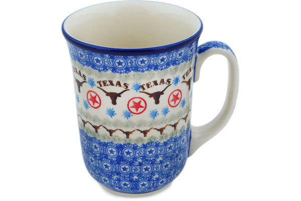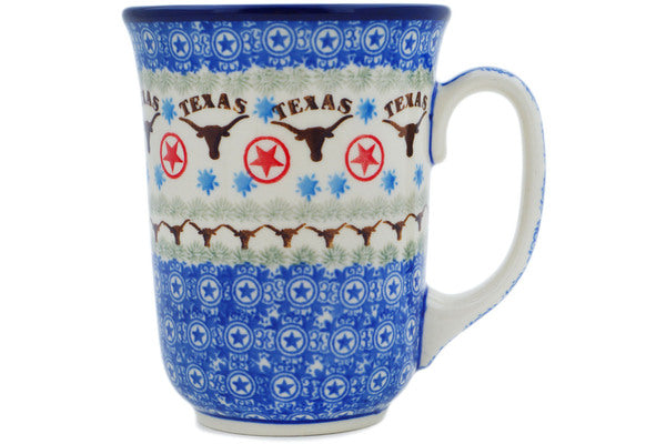 This State Of Texas 17 oz Bistro Mug was handmade and hand decorated in Boleslawiec, Poland by skilled artisans according to old traditional methods. This Polish stoneware is microwave, dishwasher, freezer, and oven safe up to 480°F. It does not contain lead or cadmium. It is part of the State Of Texas Collection.