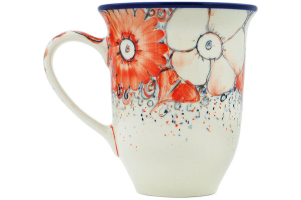 This Peachy Keen 17 oz Bistro Mug was handmade and hand decorated in Boleslawiec, Poland by skilled artisans according to old traditional methods. This is a Polish pottery Signature Unikat, which means that it has been hand painted with both sponges and brushes and it is signed by the artist who painted it. Unikat pieces are the most intricate works of art. Larger Unikat items take hours of very careful work to finish. This Polish stoneware is microwave, dishwasher, freezer, and oven safe up to 480°F. It does not contain lead or cadmium. It is part of the Peachy Keen Collection.