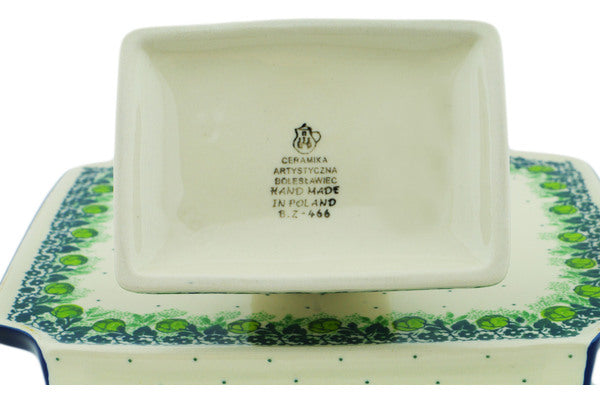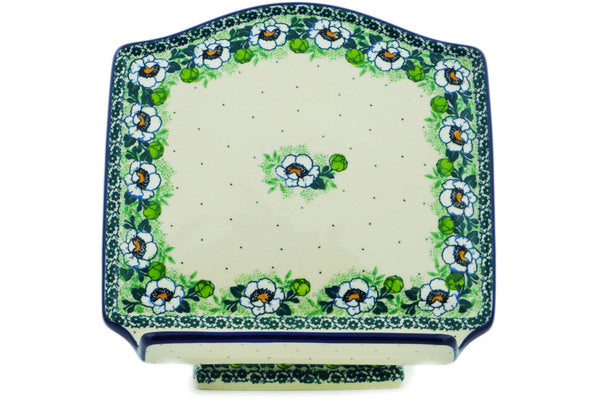 This Green Flora 9" Book Stand was handmade and hand decorated in Boleslawiec, Poland by skilled artisans according to old traditional methods. This Polish stoneware is microwave, dishwasher, freezer, and oven safe up to 480°F. It does not contain lead or cadmium. It is part of the Green Flora Collection.