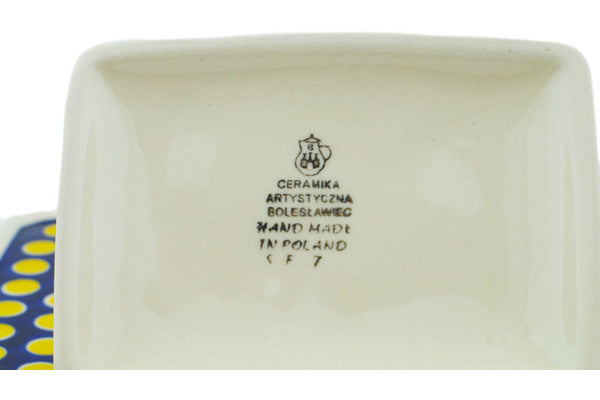 This Yellow Dots 9" Book Stand was handmade and hand decorated in Boleslawiec, Poland by skilled artisans according to old traditional methods. This Polish stoneware is microwave, dishwasher, freezer, and oven safe up to 480°F. It does not contain lead or cadmium. It is part of the Yellow Dots Collection.