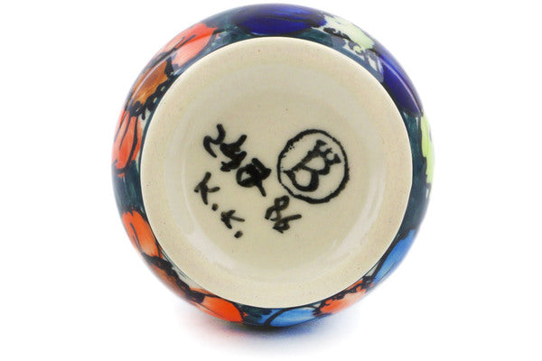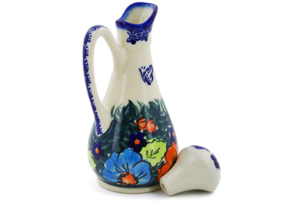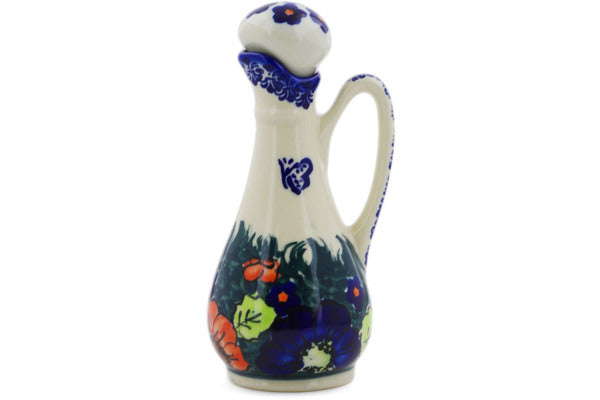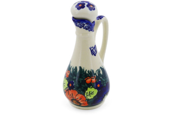 This Butterfly Splendor 5 oz Bottle was handmade and hand decorated in Boleslawiec, Poland by skilled artisans according to old traditional methods. This is a Polish pottery Signature Unikat, which means that it has been hand painted with both sponges and brushes and it is signed by the artist who painted it. Unikat pieces are the most intricate works of art. Larger Unikat items take hours of very careful work to finish. This Polish stoneware is microwave, dishwasher, freezer, and oven safe up to 480°F. It does not contain lead or cadmium. It is part of the Butterfly Splendor Collection.