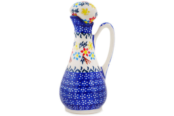 This Spring Flower Ring 5 oz Bottle was handmade and hand decorated in Boleslawiec, Poland by skilled artisans according to old traditional methods. This Polish stoneware is microwave, dishwasher, freezer, and oven safe up to 480°F. It does not contain lead or cadmium. It is part of the Spring Flower Ring Collection.