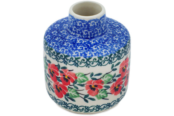 This Red Pansy 7 oz Bottle was handmade and hand decorated in Boleslawiec, Poland by skilled artisans according to old traditional methods. This Polish stoneware is microwave, dishwasher, freezer, and oven safe up to 480°F. It does not contain lead or cadmium. It is part of the Red Pansy Collection.