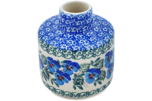This Sweet Blue Spring 7 oz Bottle was handmade and hand decorated in Boleslawiec, Poland by skilled artisans according to old traditional methods. This Polish stoneware is microwave, dishwasher, freezer, and oven safe up to 480°F. It does not contain lead or cadmium. It is part of the Sweet Blue Spring Collection.