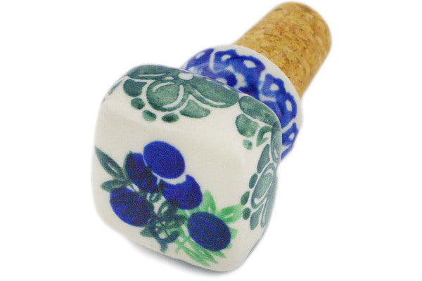 This Blueberry Fields Forever 2" Bottle Stopper was handmade and hand decorated in Boleslawiec, Poland by skilled artisans according to old traditional methods. This Polish stoneware is microwave, dishwasher, freezer, and oven safe up to 480°F. It does not contain lead or cadmium. It is part of the Blueberry Fields Forever Collection.