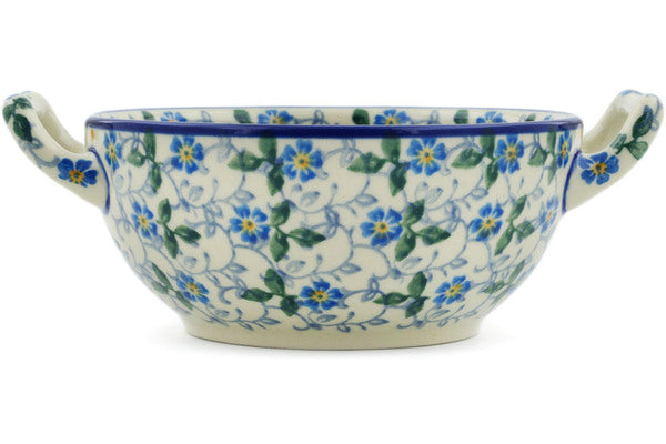 This Summer Wind 10 oz Bouillon Cup was handmade and hand decorated in Boleslawiec, Poland by skilled artisans according to old traditional methods. This Polish stoneware is microwave, dishwasher, freezer, and oven safe up to 480°F. It does not contain lead or cadmium. It is part of the Summer Wind Collection.