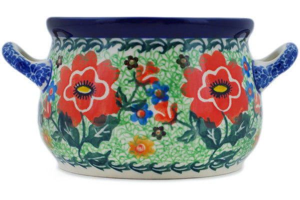 This Red Poppies 12 oz Bouillon Cup was handmade and hand decorated in Boleslawiec, Poland by skilled artisans according to old traditional methods. This is a Polish pottery Signature Unikat, which means that it has been hand painted with both sponges and brushes and it is signed by the artist who painted it. Unikat pieces are the most intricate works of art. Larger Unikat items take hours of very careful work to finish. This Polish stoneware is microwave, dishwasher, freezer, and oven safe up to 480°F. It does not contain lead or cadmium. It is part of the Red Poppies Collection.