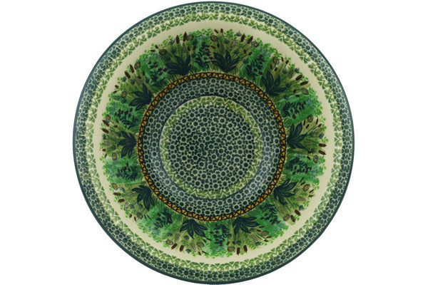 This Cattail Meadow 10" Bowl was handmade and hand decorated in Boleslawiec, Poland by skilled artisans according to old traditional methods. This is a Polish pottery Signature Unikat, which means that it has been hand painted with both sponges and brushes and it is signed by the artist who painted it. Unikat pieces are the most intricate works of art. Larger Unikat items take hours of very careful work to finish. This Polish stoneware is microwave, dishwasher, freezer, and oven safe up to 480°F. It does not contain lead or cadmium. It is part of the Cattail Meadow Collection.