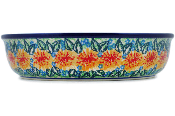 This Marigold Chain 10" Bowl was handmade and hand decorated in Boleslawiec, Poland by skilled artisans according to old traditional methods. This is a Polish pottery Signature Unikat, which means that it has been hand painted with both sponges and brushes and it is signed by the artist who painted it. Unikat pieces are the most intricate works of art. Larger Unikat items take hours of very careful work to finish. This Polish stoneware is microwave, dishwasher, freezer, and oven safe up to 480°F. It does not contain lead or cadmium. It is part of the Marigold Chain Collection.
