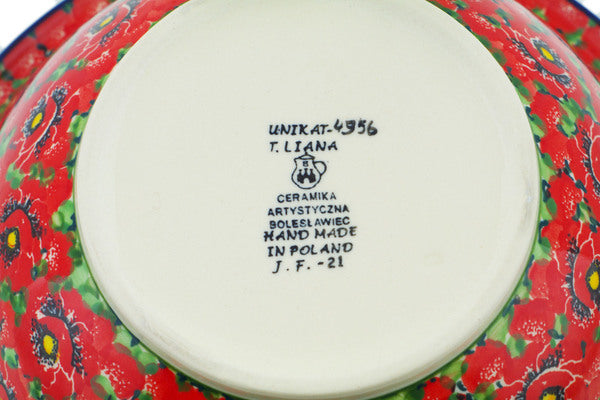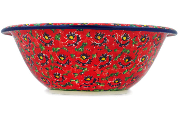 This Savvy Scarlet 10" Bowl was handmade and hand decorated in Boleslawiec, Poland by skilled artisans according to old traditional methods. This is a Polish pottery Signature Unikat, which means that it has been hand painted with both sponges and brushes and it is signed by the artist who painted it. Unikat pieces are the most intricate works of art. Larger Unikat items take hours of very careful work to finish. This Polish stoneware is microwave, dishwasher, freezer, and oven safe up to 480°F. It does not contain lead or cadmium. It is part of the Savvy Scarlet Collection.