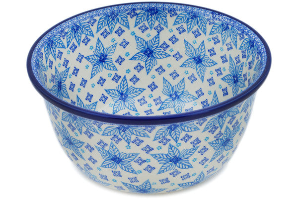 This Blue Poinsettia 11" Bowl was handmade and hand decorated in Boleslawiec, Poland by skilled artisans according to old traditional methods. This is a Polish pottery Signature Unikat, which means that it has been hand painted with both sponges and brushes and it is signed by the artist who painted it. Unikat pieces are the most intricate works of art. Larger Unikat items take hours of very careful work to finish. This Polish stoneware is microwave, dishwasher, freezer, and oven safe up to 480°F. It does not contain lead or cadmium. It is part of the Blue Poinsettia Collection.